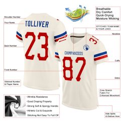 Custom Cream Red-Royal Mesh Authentic Football Jersey