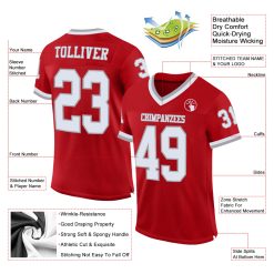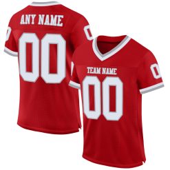 Custom Red White-Gray Mesh Authentic Throwback Football Jersey