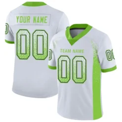 Custom White Neon Green-Navy Mesh Drift Fashion Football Jersey