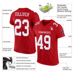 Custom Navy Jersey Football Authentic Mesh White-Red