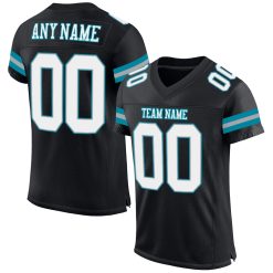 Custom Black White-Teal Mesh Authentic Football Jersey $27.99