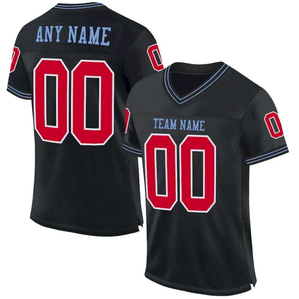 Be the first to review “Custom Black Red-Light Blue Mesh Authentic Throwback Football Jersey” Cancel reply