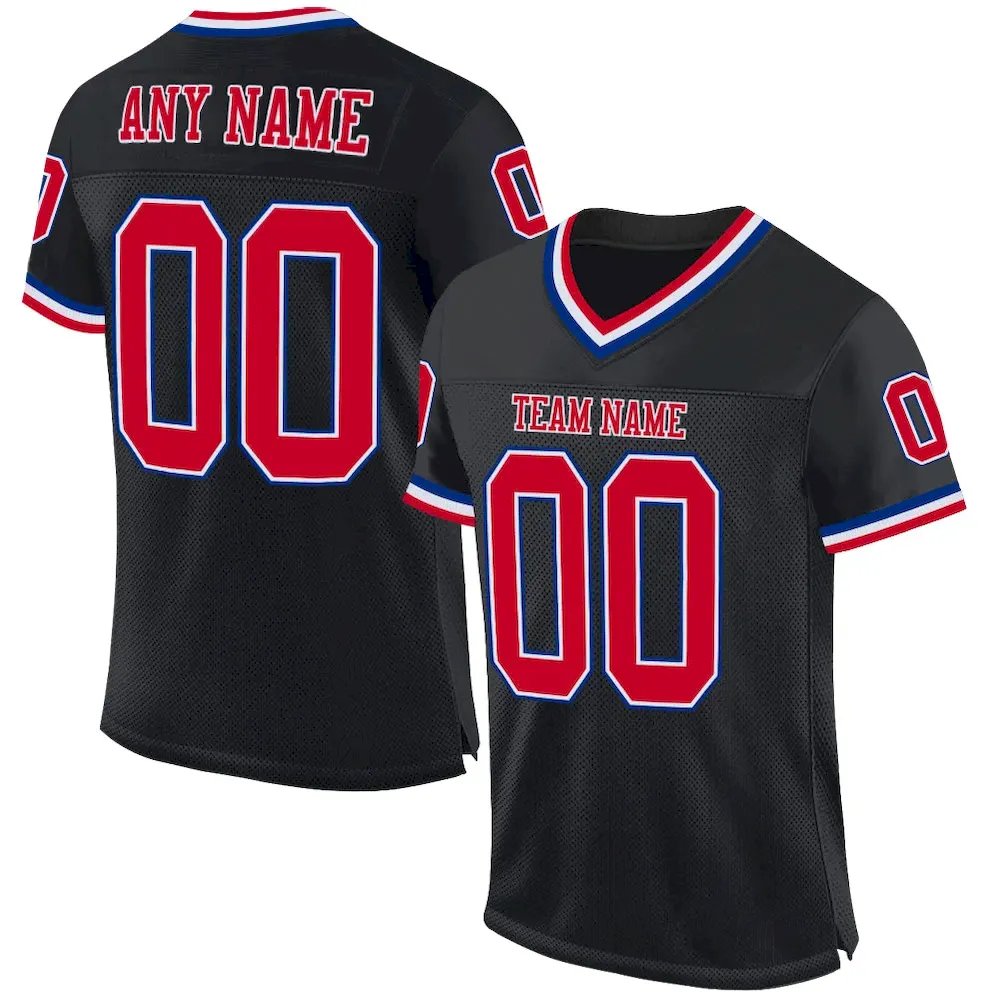 Be the first to review “Custom Black Red-Royal Mesh Authentic Throwback Football Jersey” Cancel reply