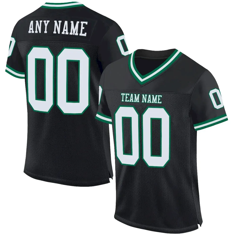 Custom Black White-Kelly Green Mesh Authentic Throwback Football Jersey