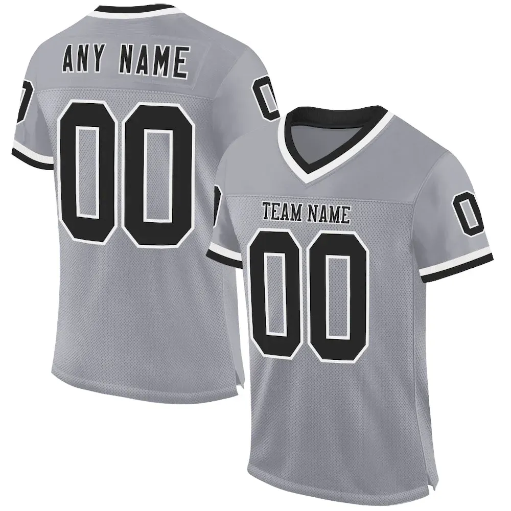 Custom Gray Black-White Mesh Authentic Throwback Football Jersey