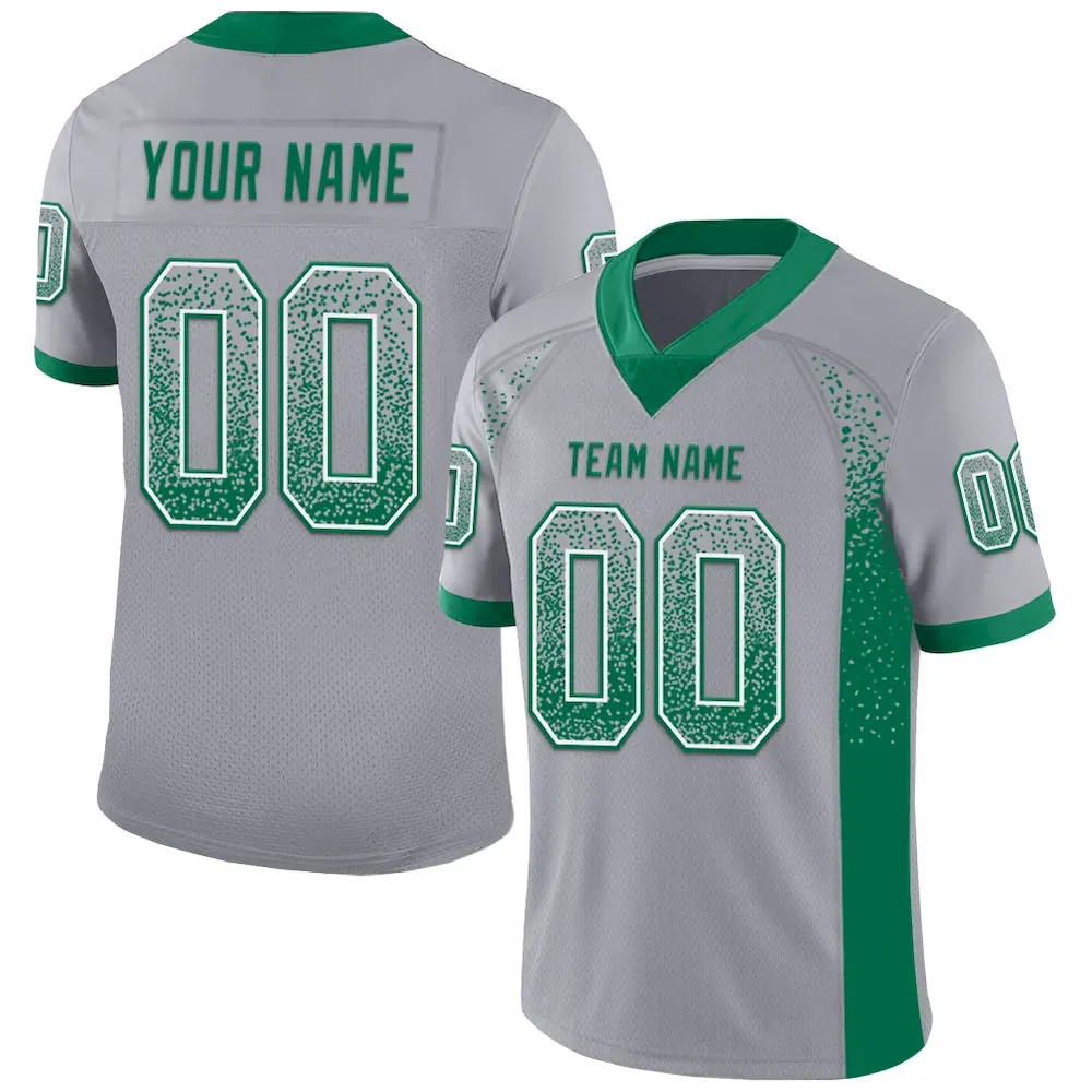 Custom Gray Kelly Green-White Mesh Drift Fashion Football Jersey