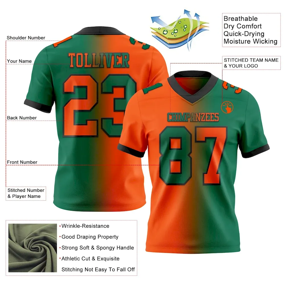 Be the first to review “Custom Kelly Green Orange-Black Mesh Authentic Gradient Fashion Football Jersey” Cancel reply
