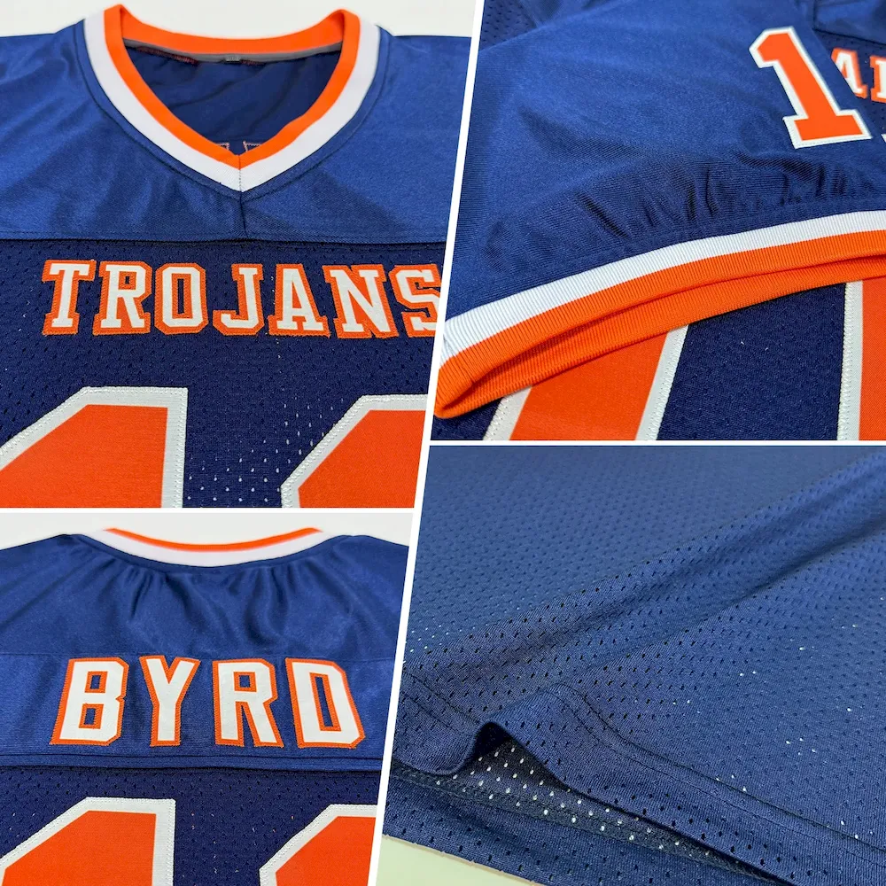Custom Navy Orange-White Mesh Authentic Throwback Football Jersey