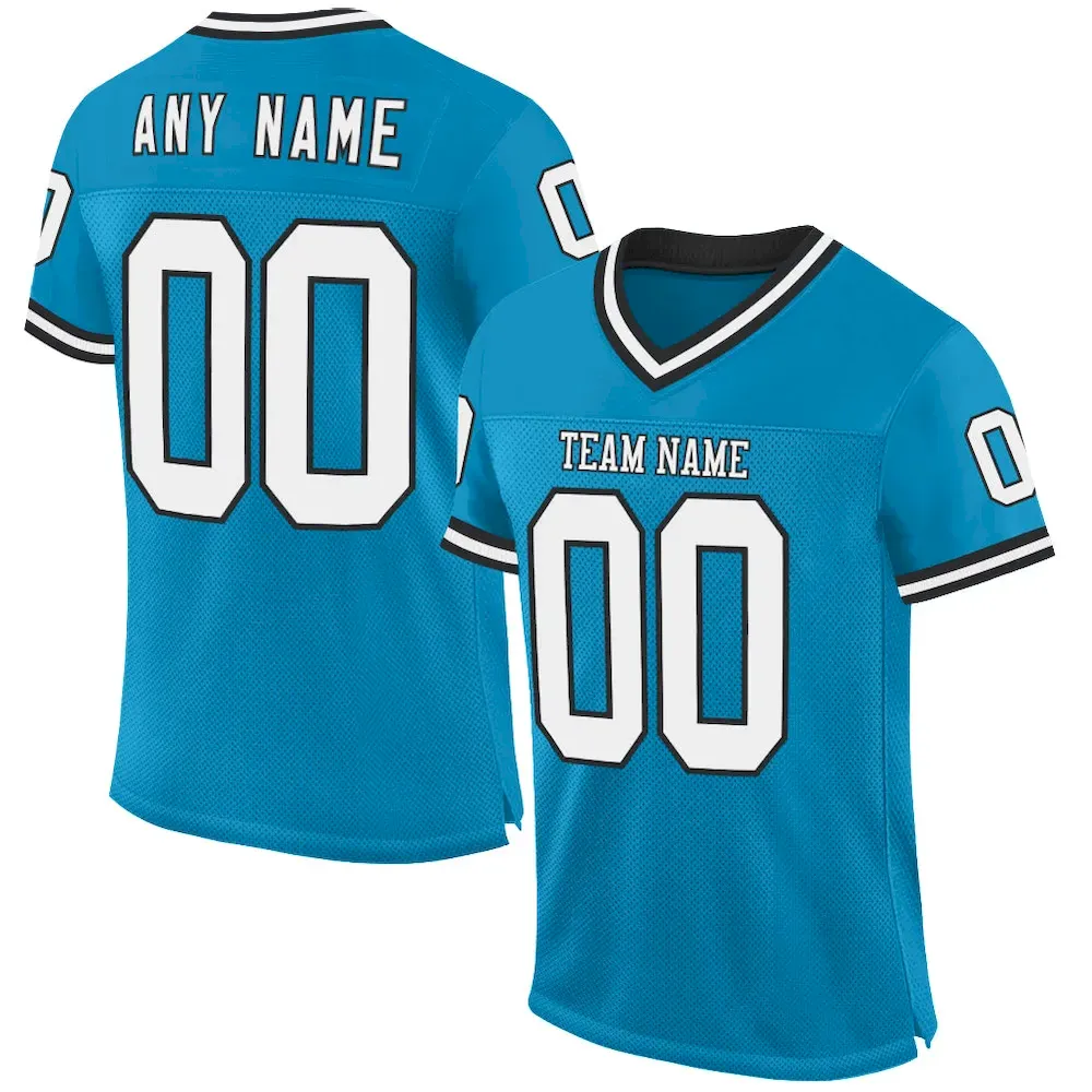 Be the first to review “Custom Panther Blue White-Black Mesh Authentic Throwback Football Jersey” Cancel reply