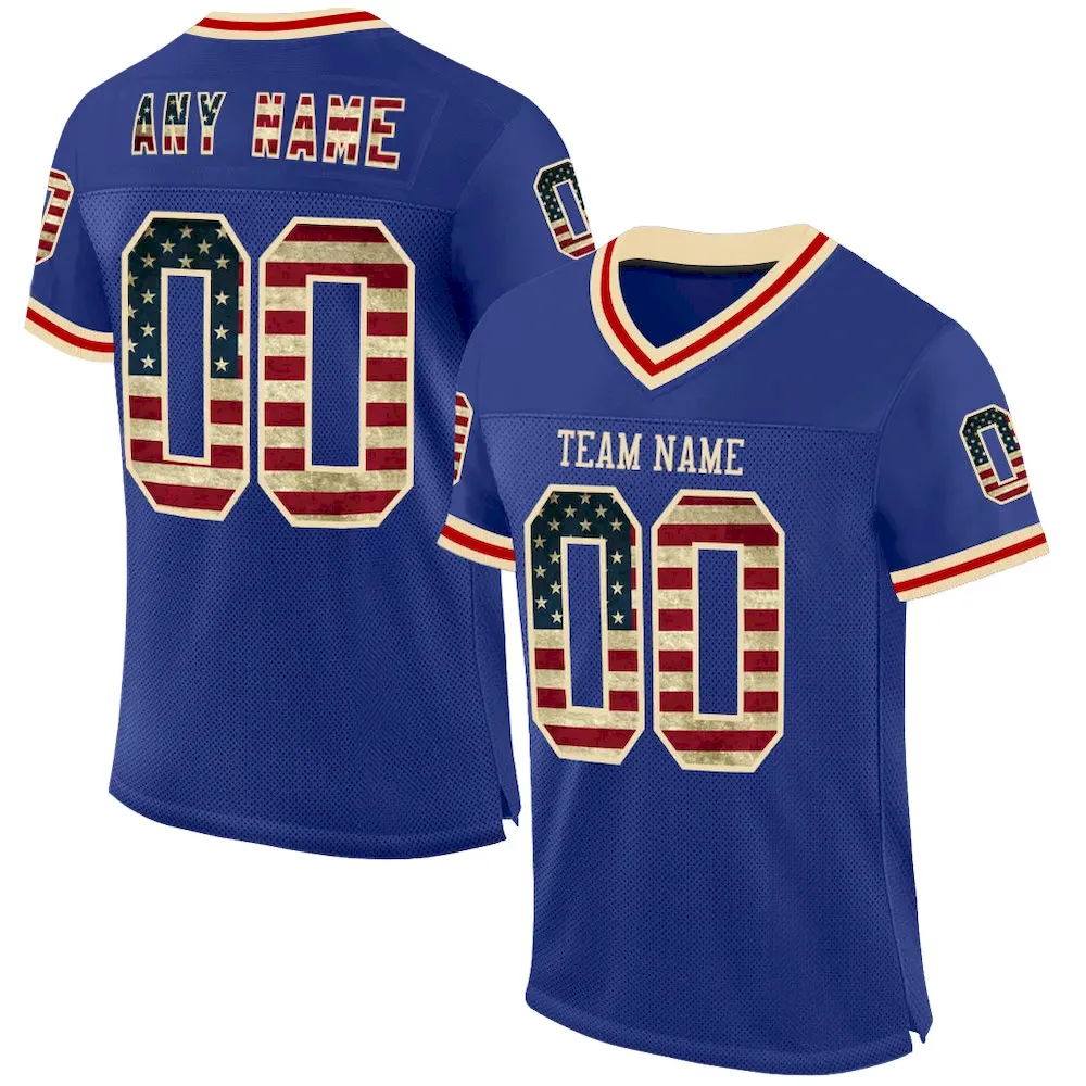Be the first to review “Custom Royal Vintage USA Flag Cream-Red Mesh Authentic Throwback Football Jersey” Cancel reply