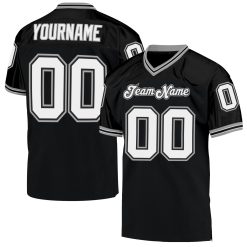 Custom Black White-Gray Mesh Authentic Throwback Football Jersey $27.99