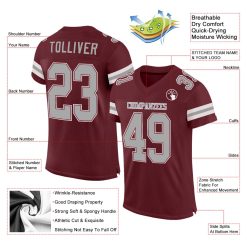 Custom Burgundy Gray-White Mesh Authentic Football Jersey