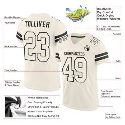 Custom Cream Cream-Black Mesh Authentic Football Jersey