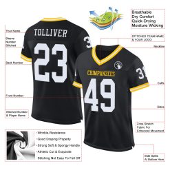 Custom Black White-Gold Mesh Authentic Throwback Football Jersey