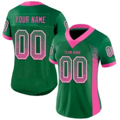 Custom Kelly Green Pink-White Mesh Drift Fashion Football Jersey