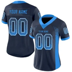 Custom Navy Powder Blue-White Mesh Drift Fashion Football Jersey