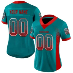 Custom Teal Red-White Mesh Drift Fashion Football Jersey