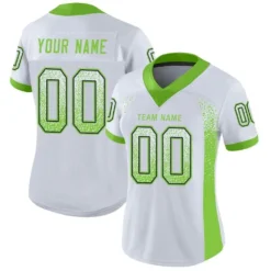 Custom White Neon Green-Navy Mesh Drift Fashion Football Jersey
