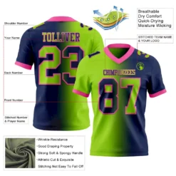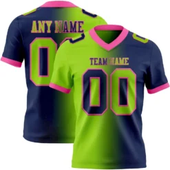 Custom Navy Neon Green-Pink Mesh Authentic Gradient Fashion Football Jersey
