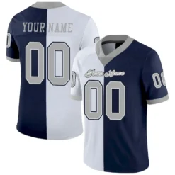 Custom Navy Gray-White Mesh Split Fashion Football Jersey
