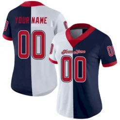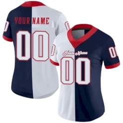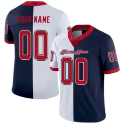 Custom Navy Red-White Mesh Split Fashion Football Jersey