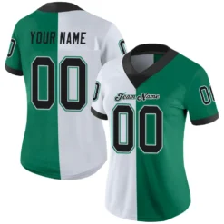 Custom Kelly Green Black-White Mesh Split Fashion Football Jersey