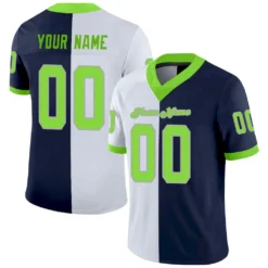 Custom Navy Neon Green-White Mesh Split Fashion Football Jersey