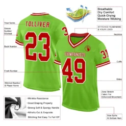Custom Neon Green Red-White Mesh Authentic Throwback Football Jersey