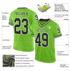 Custom Neon Green Black-White Mesh Authentic Throwback Football Jersey
