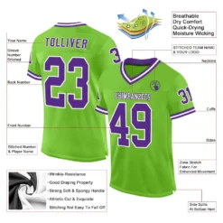 Custom Neon Green Purple-White Mesh Authentic Throwback Football Jersey