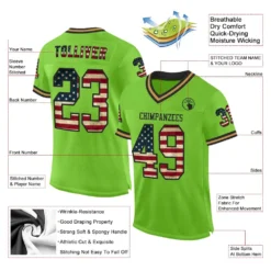 Custom Neon Green Vintage USA Flag Black-Old Gold Mesh Authentic Throwback Football Jersey