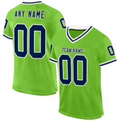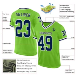 Custom Neon Green Navy-White Mesh Authentic Throwback Football Jersey