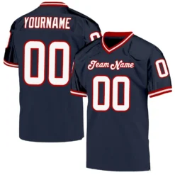 Custom Navy White-Red Mesh Authentic Throwback Football Jersey
