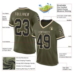 Custom Olive Black-Cream Mesh Authentic Throwback Salute To Service Football Jersey