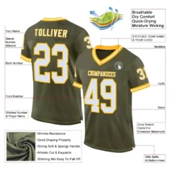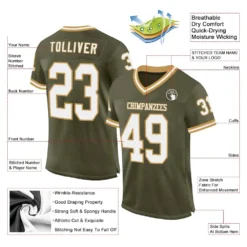 Custom Olive White-Old Gold Mesh Authentic Throwback Salute To Service Football Jersey