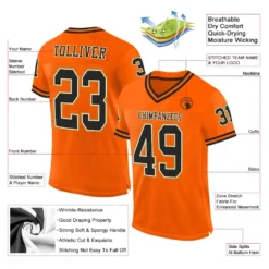 Custom Orange Black-Old Gold Mesh Authentic Throwback Football Jersey