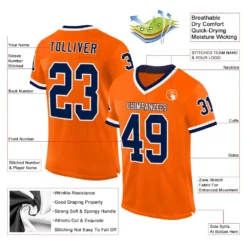 Custom Orange Navy-White Mesh Authentic Throwback Football Jersey