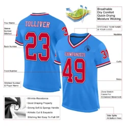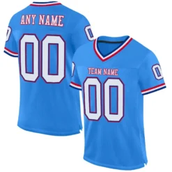 Custom Powder Blue Red-Navy Mesh Authentic Throwback Football Jersey