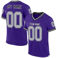 Custom Purple Gray-Black Mesh Authentic Throwback Football Jersey
