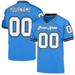 Custom Powder Blue White-Black Mesh Authentic Throwback Football Jersey