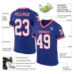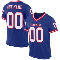 Custom Royal White-Red Mesh Authentic Throwback Football Jersey