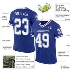 Custom Royal White Mesh Authentic Throwback Football Jersey