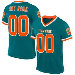 Custom Teal Orange-White Mesh Authentic Throwback Football Jersey