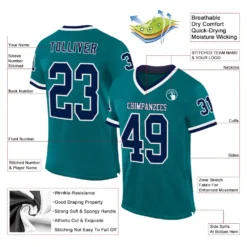 Custom Teal Navy-White Mesh Authentic Throwback Football Jersey