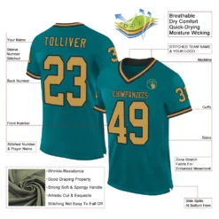 Custom Teal Old Gold-Black Mesh Authentic Throwback Football Jersey