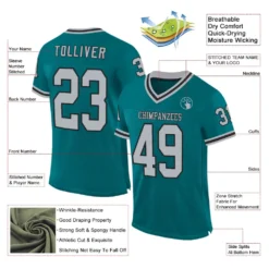 Custom Teal Gray-Black Mesh Authentic Throwback Football Jersey