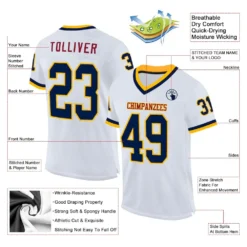 Custom White Navy-Old Gold Mesh Authentic Throwback Football Jersey