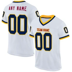 Custom White Navy Gold-Maroon Mesh Authentic Throwback Football Jersey