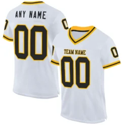 Custom White Black-Gold Mesh Authentic Throwback Football Jersey