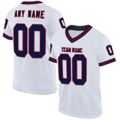 Custom White Navy-Red Mesh Authentic Throwback Football Jersey